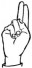 На ћирилици написано БУДИМИР СПРЕМО састоји се из 13 слова [?]. Исписано ћириличном једноручном азбуком за глувонеме: